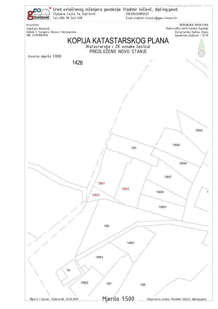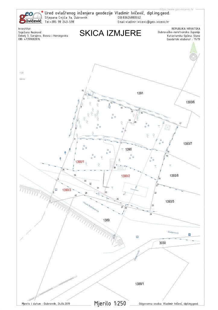 Predmet 17/19 – Geodetski projekt ; Slađenovići , k.o.Slano admin 21/05/201921/05/2019 Uvid u Geodetske elaborate Skica Izmjere Kopija Plana